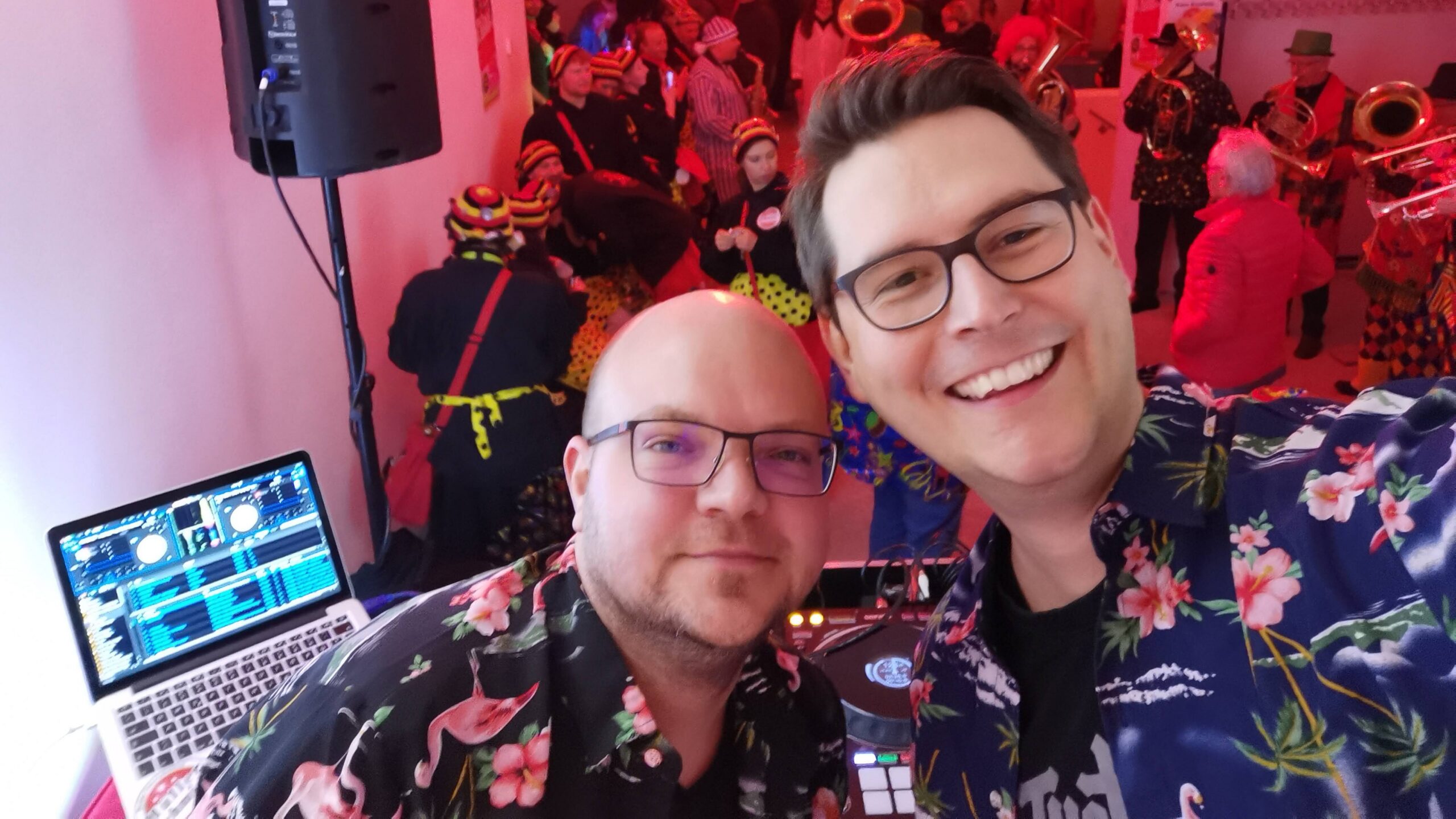 Die beiden Deejays Patrick Müller und Jan Schmidt sind bereit für ihre Veranstaltung!
